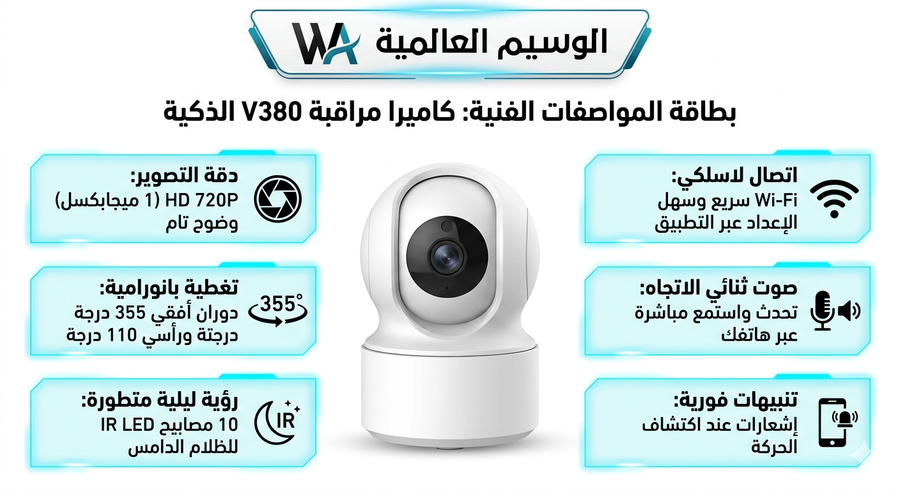 الاستثمار في كاميرا مراقبة V380 هو الخطوة الأذكى لتعزيز حماية خصوصيتك ومنزلك. في "الوسيم العالمية"، نحرص على توفير أجهزة الأمان الذكية التي تدمج بين التكنولوجيا والسهولة، ونحن هنا دائماً لدعمكم.